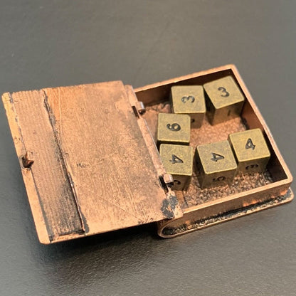 Locket Style Book Pendant with 6 Metal D6 Micro Dice